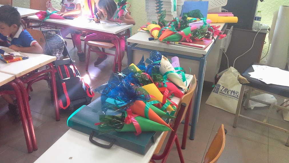 Η σημερινή μέρα είναι ουσιαστικά, για τα πρωτάκια, η επίσημη πρεμιέρα στο σχολείο κι εμείς θελήσαμε να την κάνουμε πιο όμορφη! Ο χώρος του σχολείου ήταν για τα περισσότερα από αυτά οικείος. Μας είχαν επισκεφθεί ως νηπιάκια τον Ιούνιο, με τη δασκάλα τους του νηπιαγωγείου. Για να τα υποδεχθούμε όμως όλα μαζί κατά πως αξίζει και πρέπει, ετοιμάσαμε μια μικρούλα γιορτή! Για να ' ναι η πρώτη μέρα γιορτινή αλλά κι η κάθε μέρα να συνοδεύεται από την ανάμνηση τούτης της γιορτής. Η χαρά μας μεγάλη! Κι η χαρά όταν μοιράζεται είναι διπλή χαρά ! Στα παιδικά τους πρόσωπα η χαρά και η έκπληξη ζωγραφίστηκαν όταν είδαν τα δωράκια τους. Διπλά δώρα! Πρώτα - πρώτα από το Σύλλογο Γονέων και Κηδεμόνων και από τα χέρια της προέδρου του, της κ. Έφης Λαμπρινίδου - ως έκφραση ευαισθησίας, αγάπης προς τα παιδιά και βοήθειας στο έργο μας! Κι αφού τέλειωσε η ξενάγηση στους χώρους του Σχολείου κι η γνωριμία με τους μεγάλους πήραν και τα δωράκια που με περισσή φροντίδα κι αγάπη ετοίμασε η δασκάλα τους , η κ. Ρίκη Ζεμπέκη κλείνοντας έτσι την " επίσημη πρώτη"! Όλα κύλησαν καλά! Κι αν η αρχή σηματοδοτεί τα μελλούμενα, ε, τότε, έχουμε κάθε λόγο να χαμογελάμε!