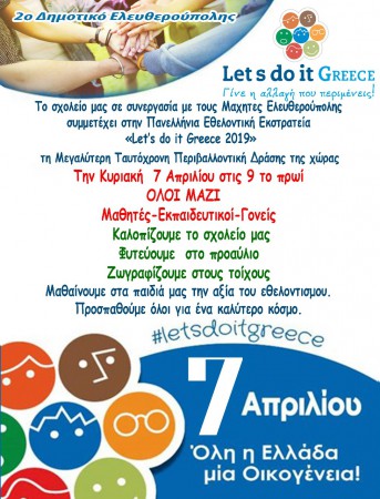 Την Κυριακή 7 Απριλίου 2019 το Σχολείο μας συμμετέχει στη Δράση